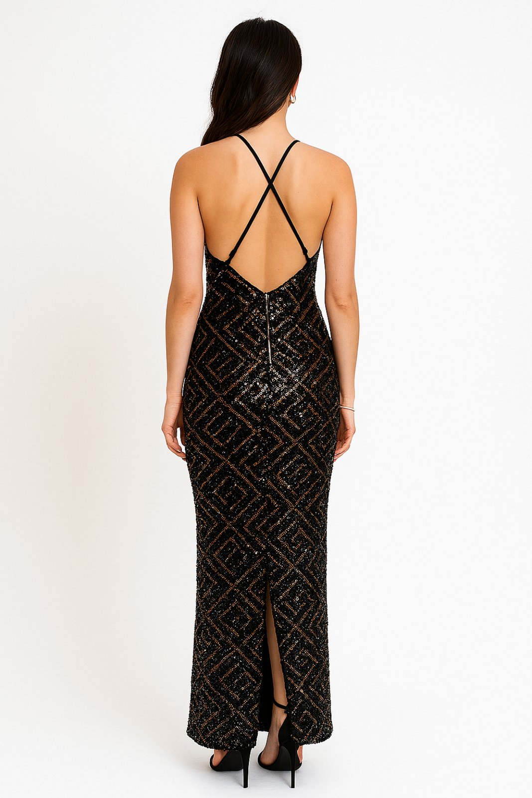 Φόρεμα με παγιέτες και ανοιχτή πλάτη