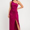 Maxi φόρεμα με σχίσιμο και πούπουλα σε σαμπανιζέ χρώμα